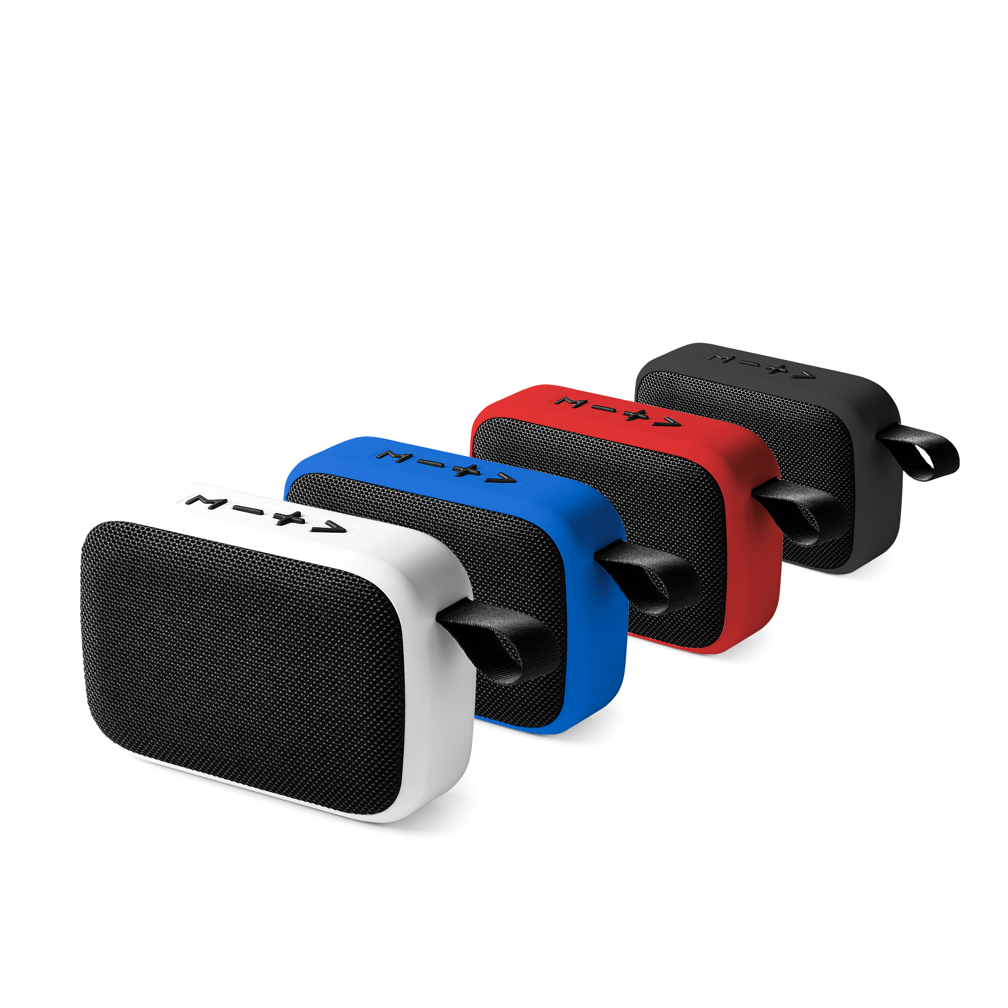 Añadir al rastreador de preciosAltavoz inalámbrico bicolor con Bluetooth con cuerpo acabado mate, asa de transporte, botones y tela a juego. Potencia de 3W y batería recargable. Cuenta con función manos libres, incorpora micrófono y botones multifunción para control de llamadas. Reproducción de audio Bluetooth, tarjeta MicroSD, modo radio FM y entrada de audio AUX