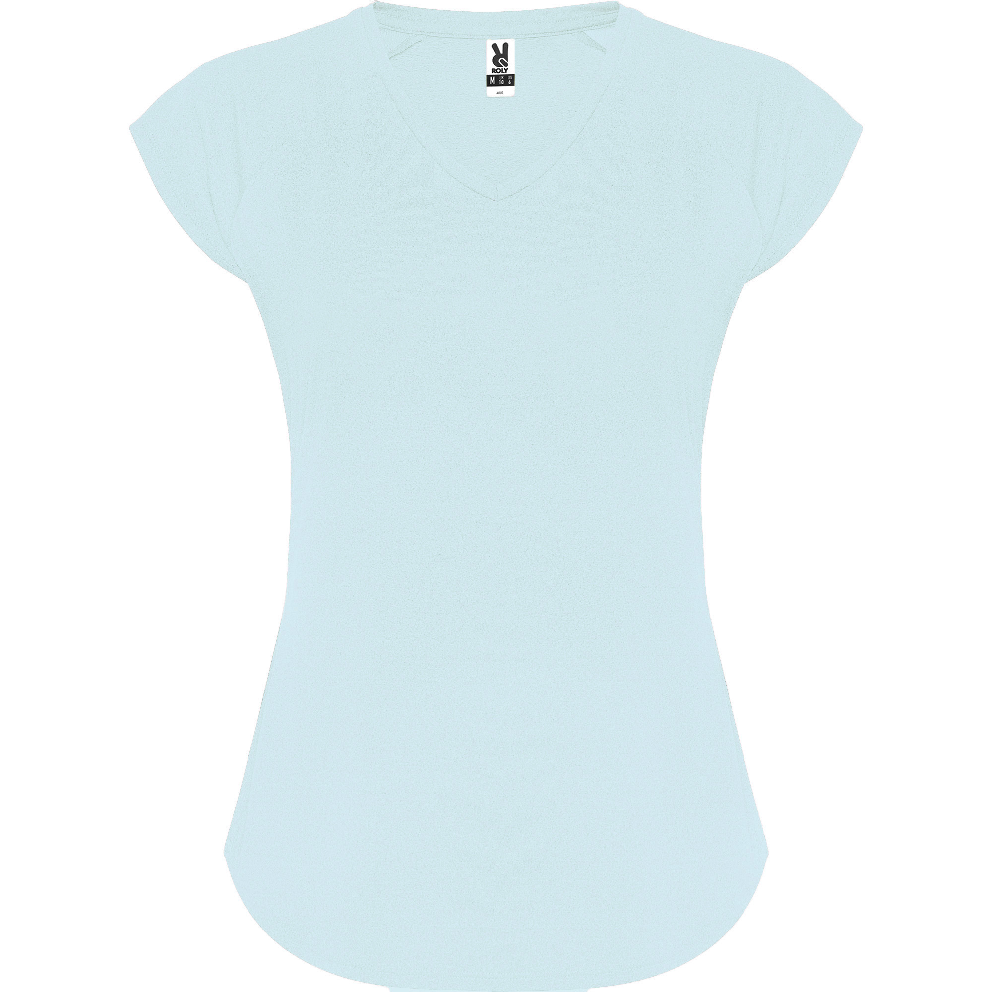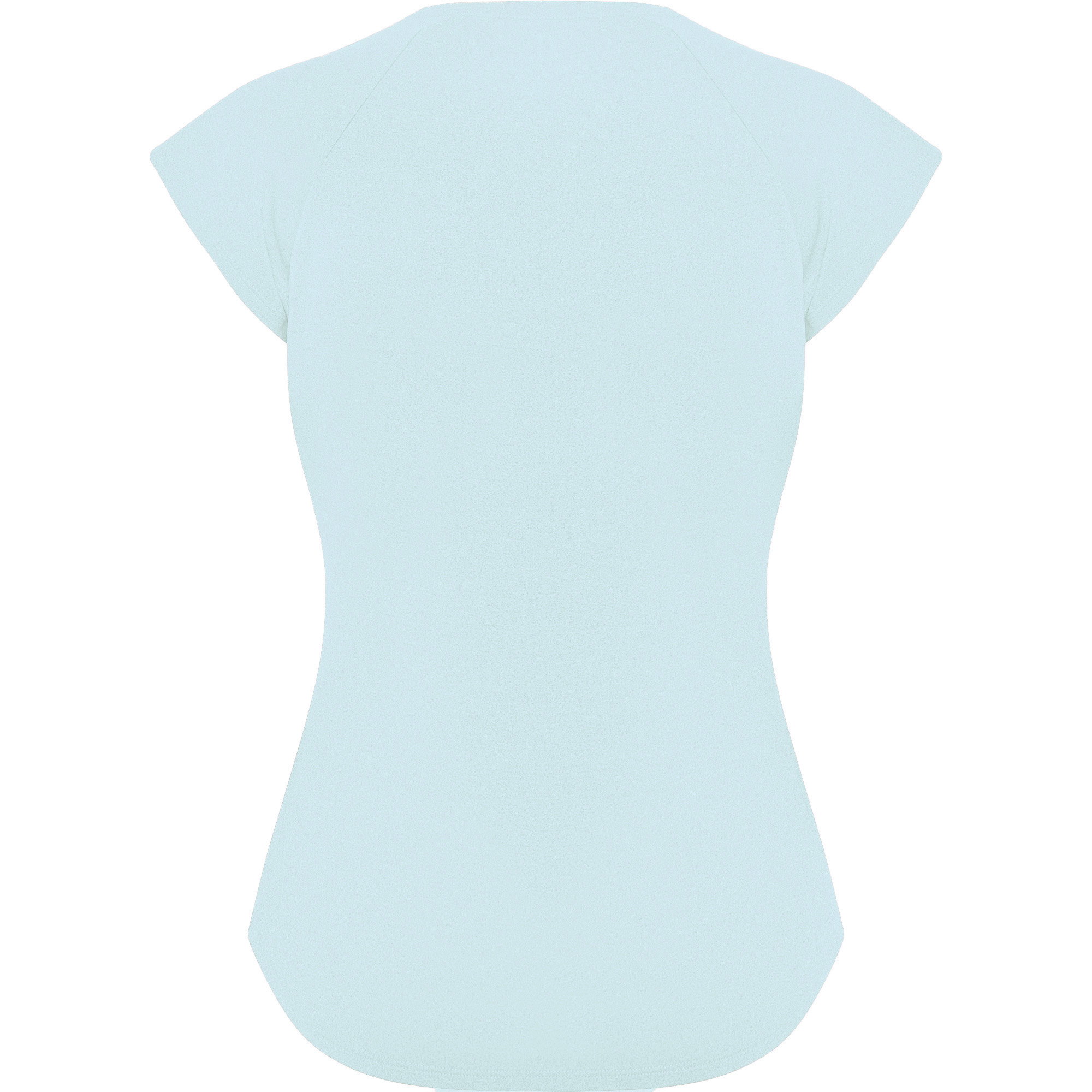 Camiseta técnica manga ranglán ligeramente entallada transpirable y elástica. Acabado piel de melocotón. Cuello en pico y cubrecosturas del mismo tejido al tono. Bajo redondeado.