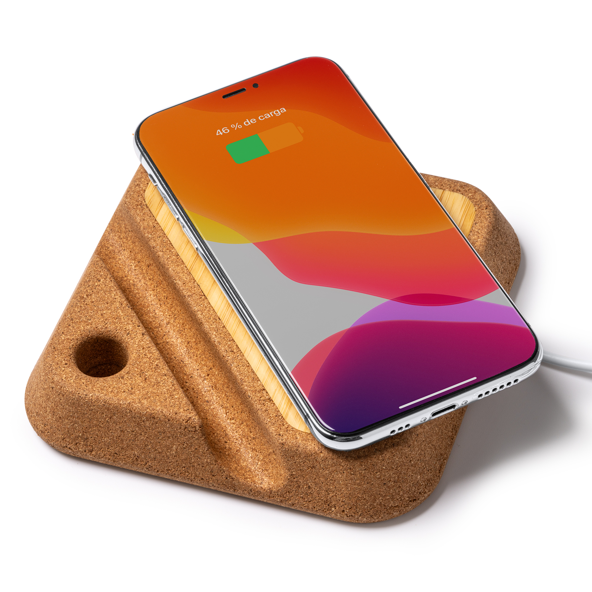 Añadir al rastreador de preciosEl cargador inalámbrico con cuerpo elaborado en corcho y superficie de carga inalámbrica en bambú. Con potencia de 10W y soporte para smartphone y para bolígrafo. Compatible con dispositivos provistos de tecnología de carga inalámbrica.