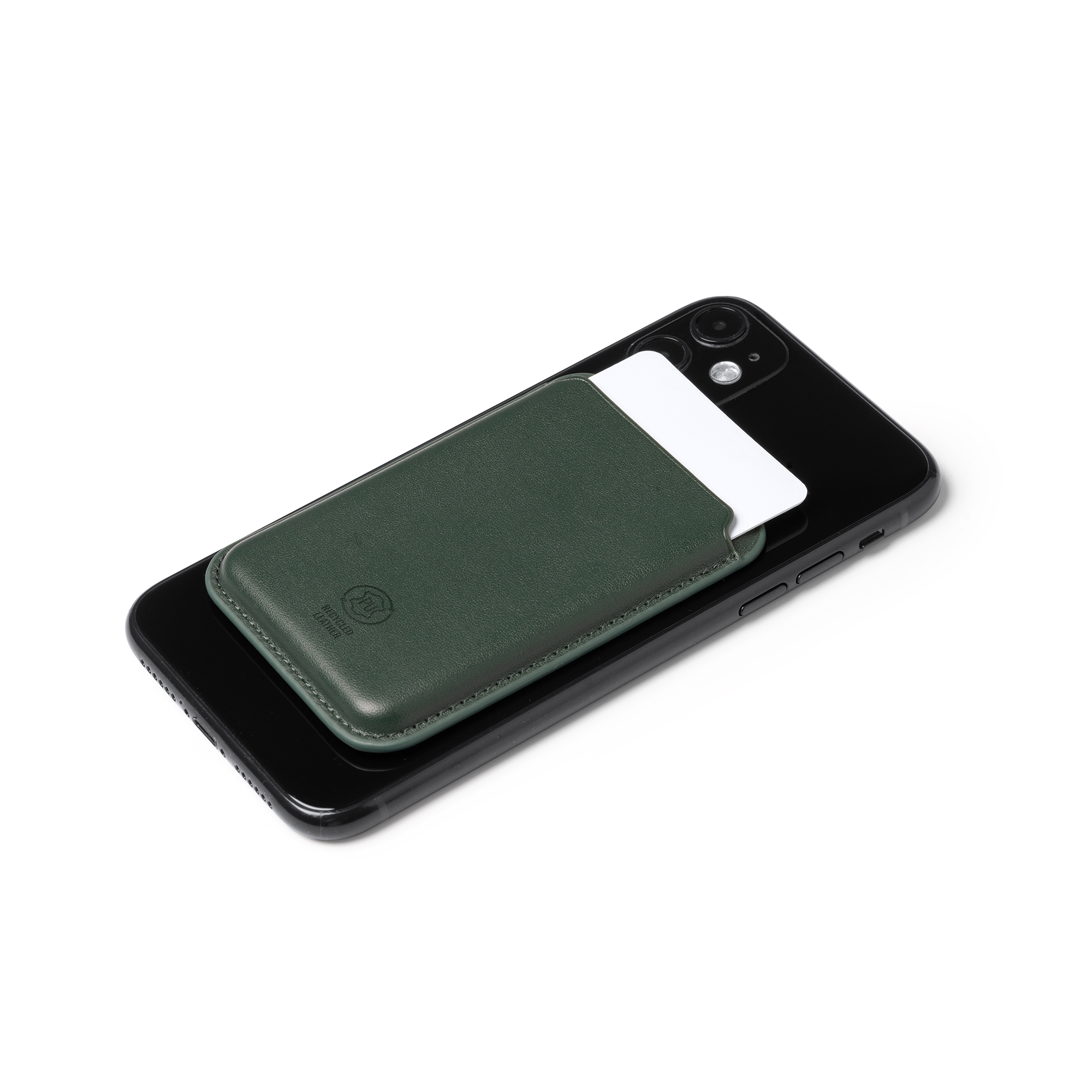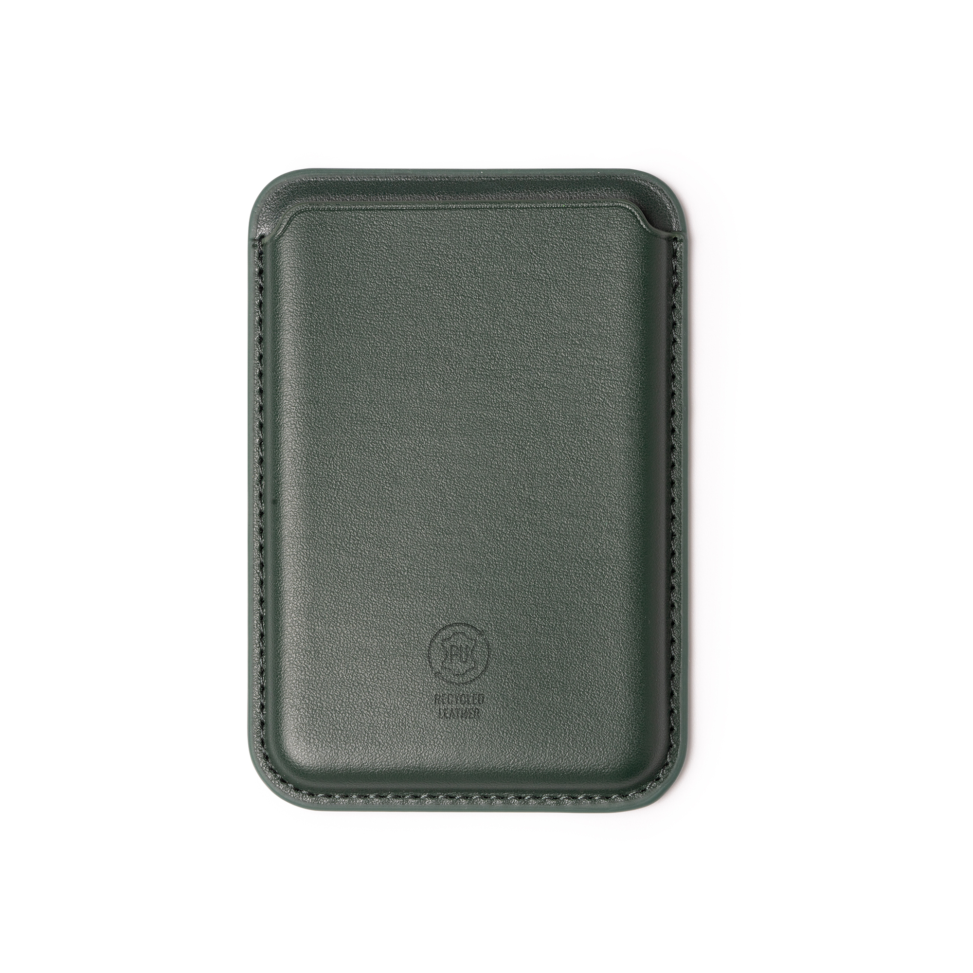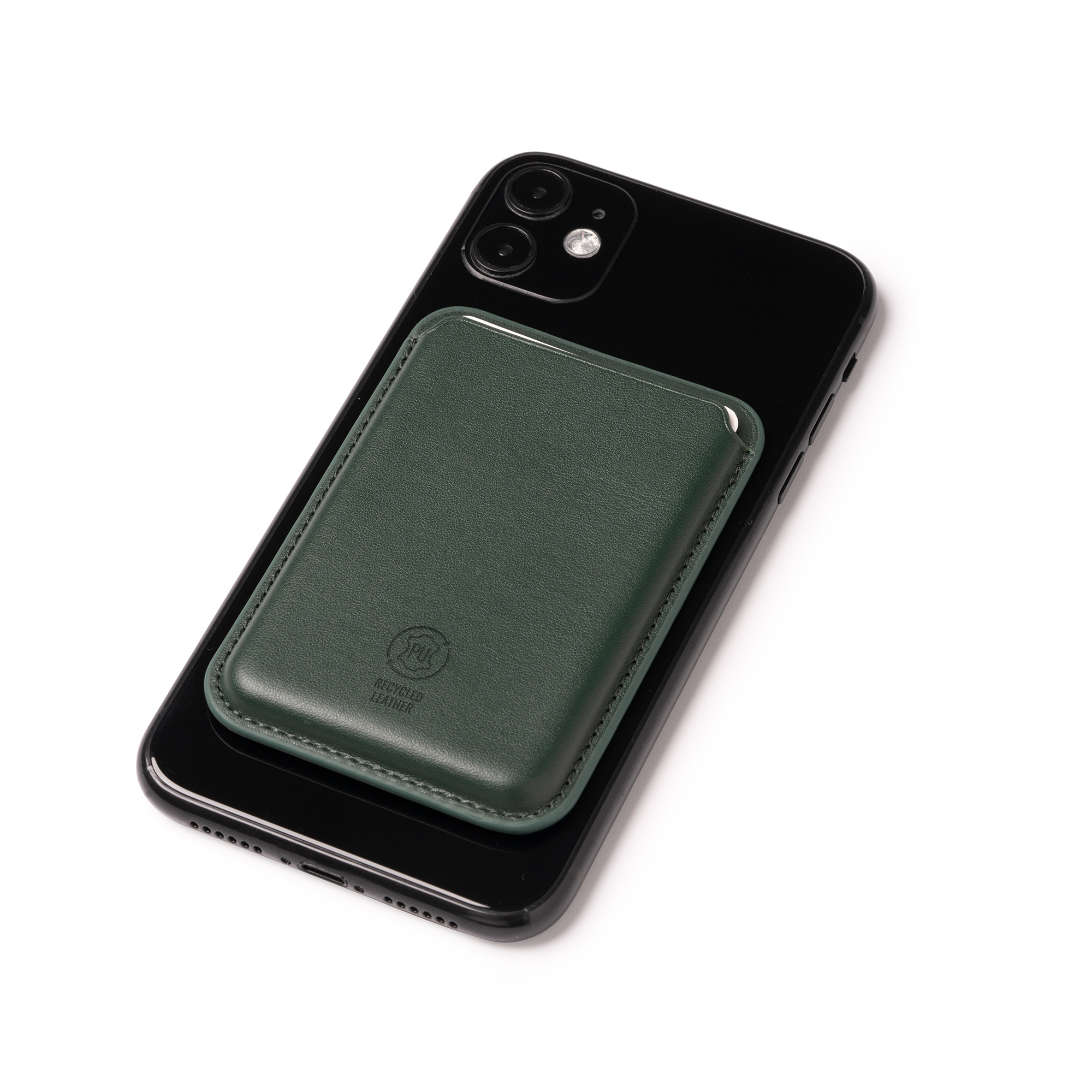 Tarjetero magnético realizado en PU reciclado. Anillo magnético adhesivo adicional incluido para poder unir tu tarjetero a tu smartphone y llevar tus pertenencias juntas.