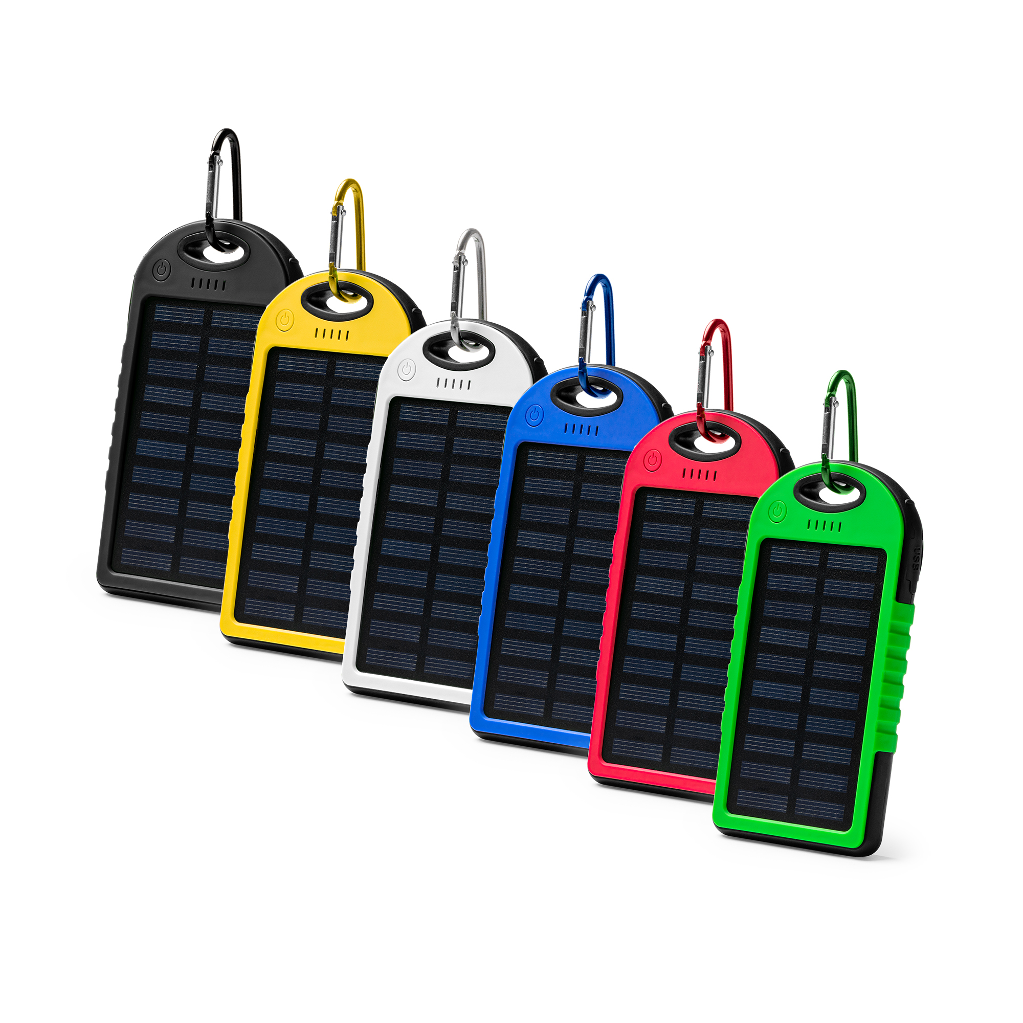 Añadir al rastreador de preciosBatería externa con capacidad de 4000mAh. Elaborado en materiales repelentes de líquidos. Cuenta con panel solar de recarga y carga eléctrica mediante cable. Indicador de carga luminoso y función linterna en el lateral. Incluye mosquetón de color a conjunto. Con dos ranuras de salida USB y cable Tipo C incluido.