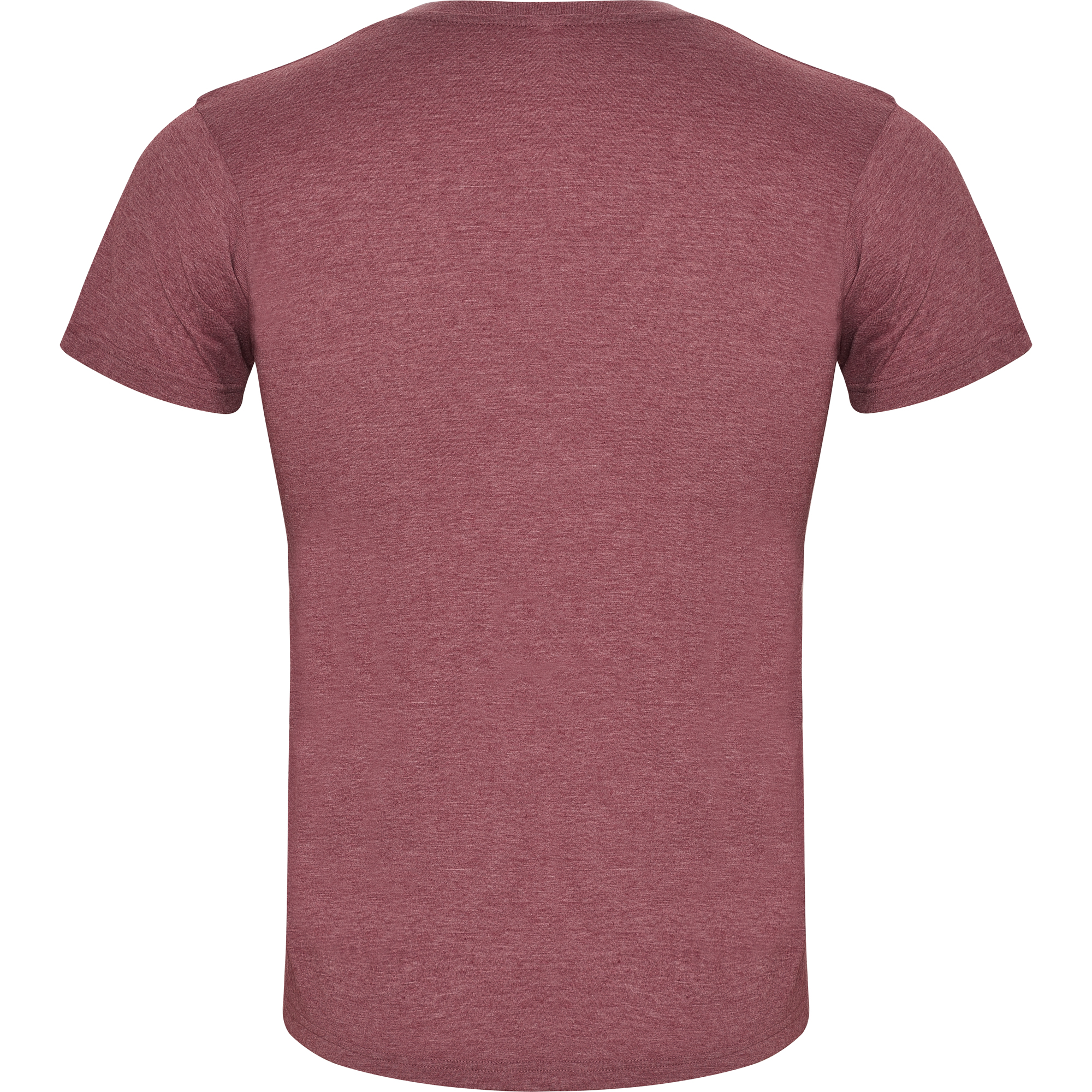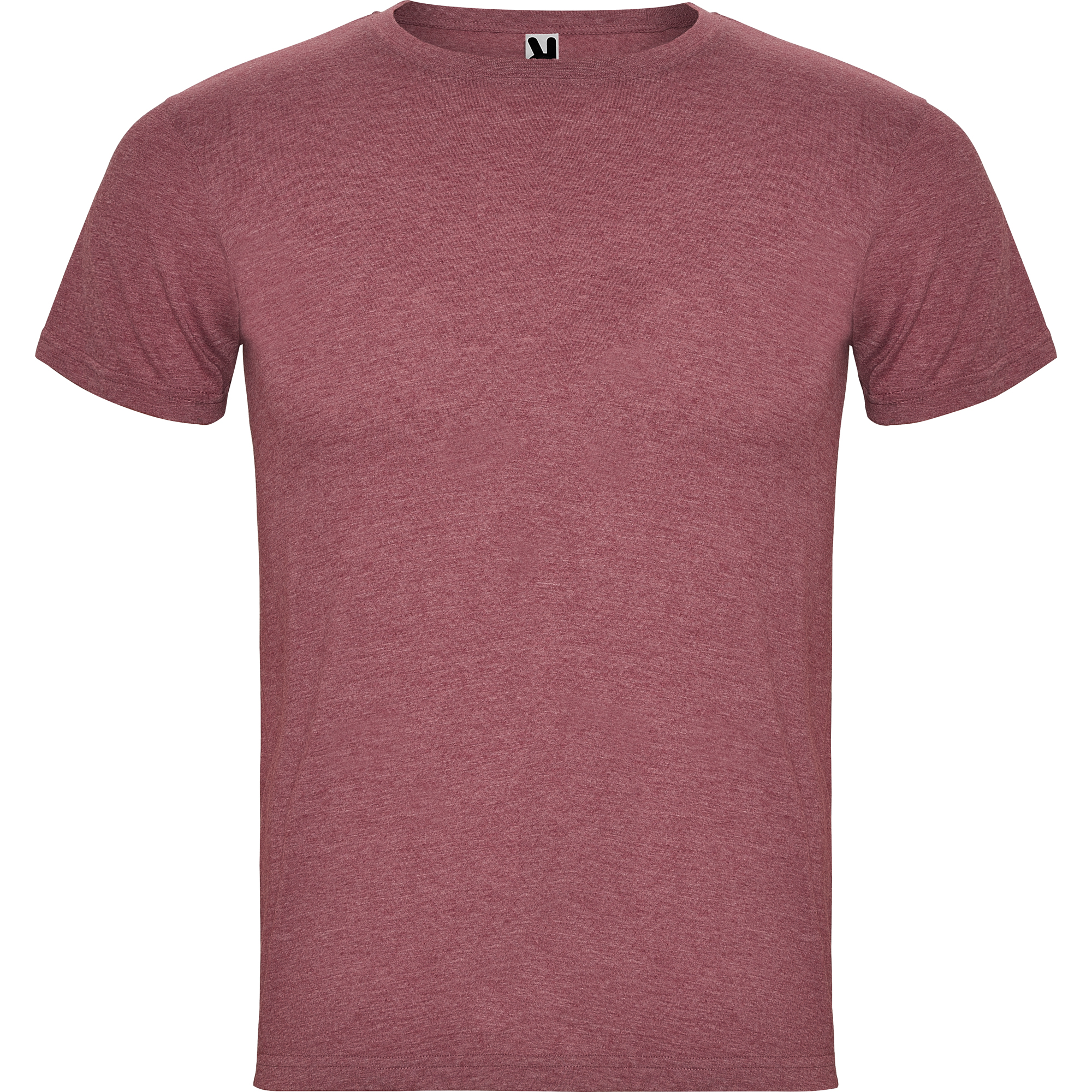 Camiseta de manga corta tubular con acabado vigoré. Cuello redondo en canalé 1×1. Cubrecosturas en cuello del mismo tejido.