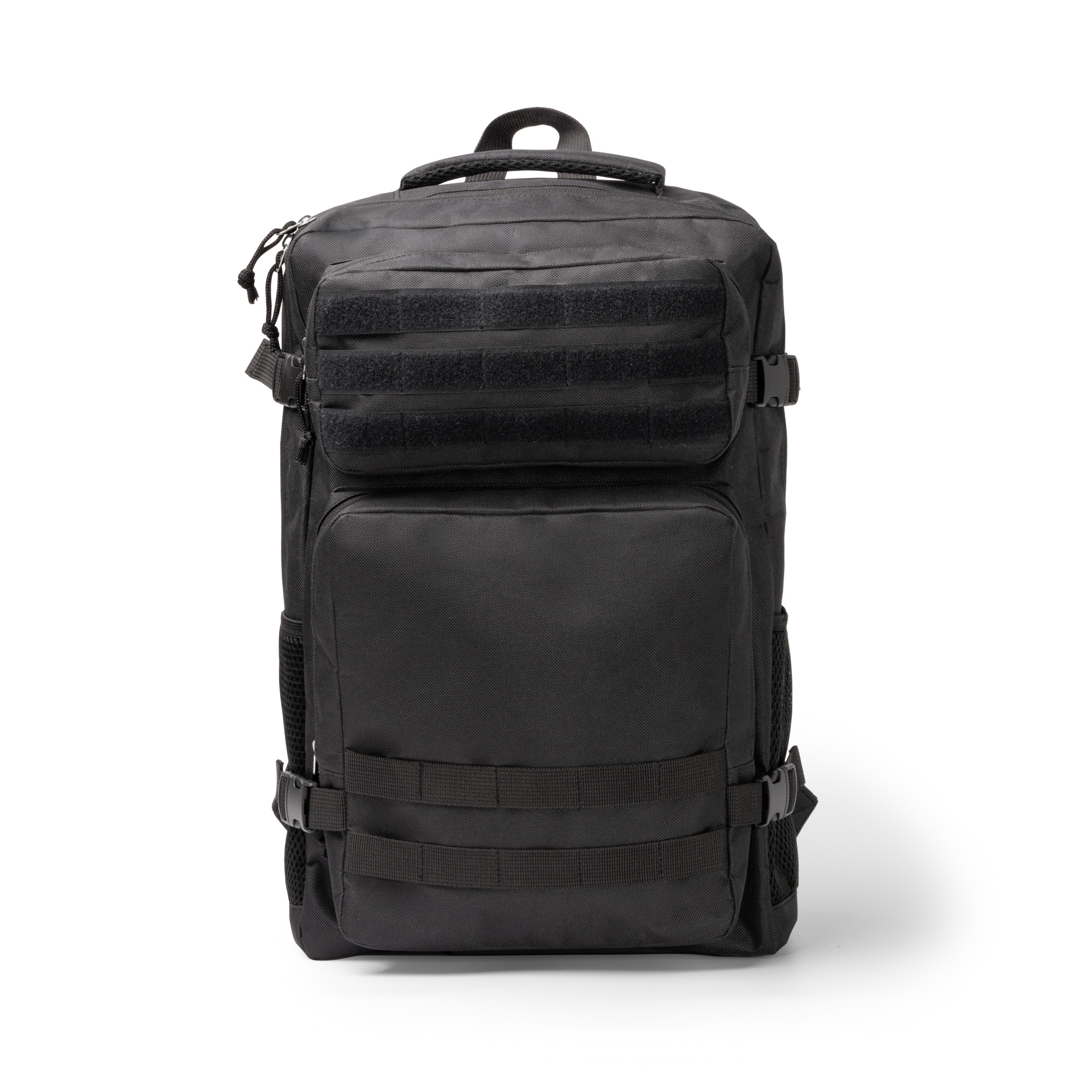 Mochila estilo deportiva elaborada en RPET 600D. Con bolsillos de diferentes tamaños en su parte frontal ofreciendo mayor versatilidad en el transporte de enseres. Compartimento principal con apertura total y compartimento para portátil de hasta 17″. Cuenta con cintas de ajuste en sus laterales y bolsillos en tejido de rejilla para botellas, además de diferentes puntos de anclaje para sujetar o asegurar objetos adicionales. Espalda y asas acolchadas.