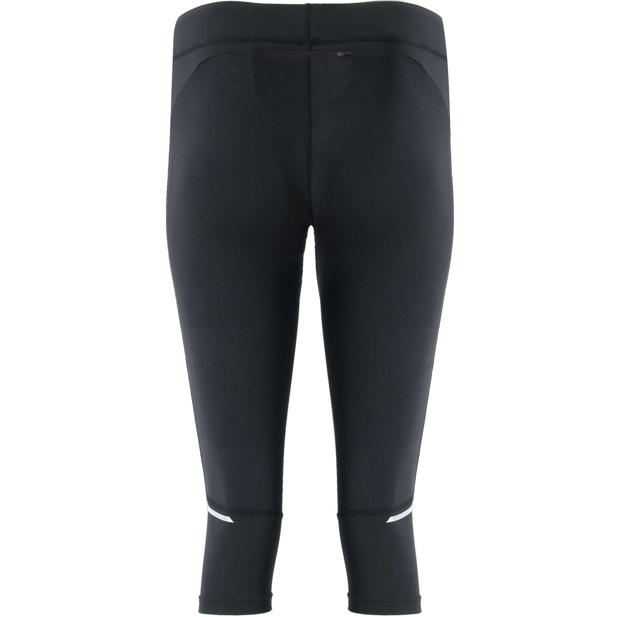 Malla media pierna running mujer transpirable. Cinturilla engomada con cordón cruzado ajustable. Detalles reflectantes. Mini bolsillo trasero.