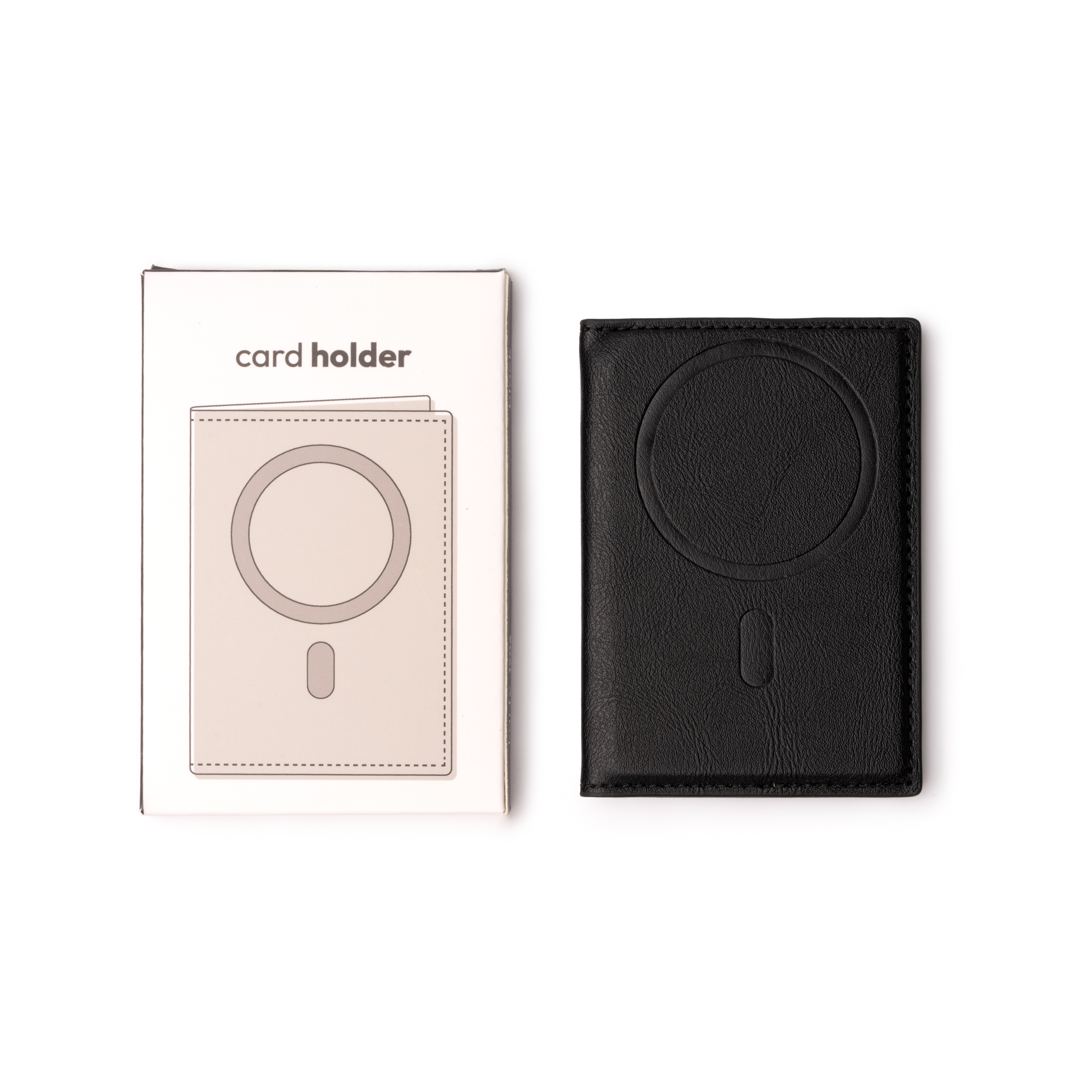 Tarjetero magnético plegable elaborado en PU reciclado. Accesorio ideal para llevar tus tarjetas junto a tu teléfono gracias a su sistema magnético. Con tres compartimentos interiores y uno exterior para distintas tarjetas.