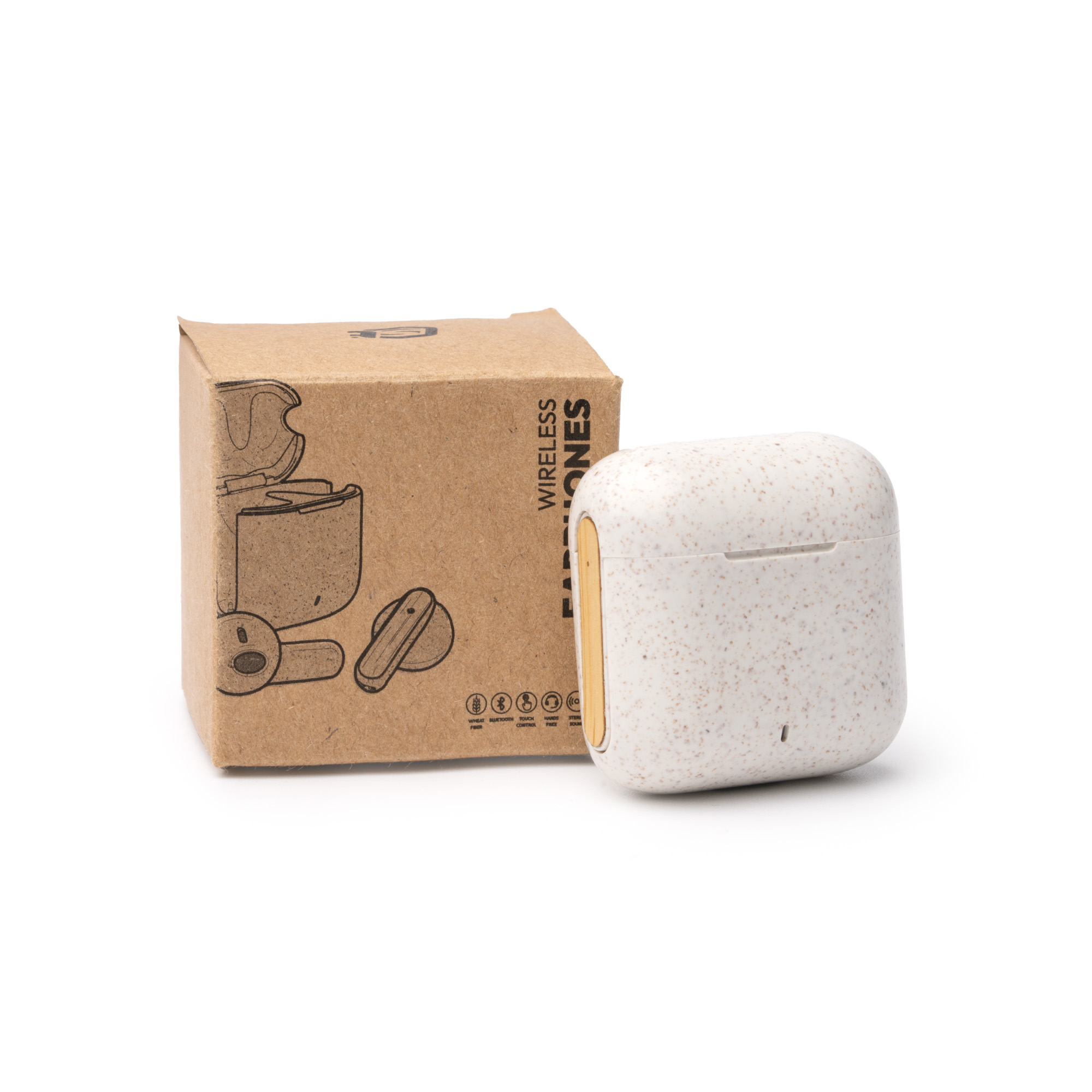 Añadir al rastreador de preciosAuriculares inalámbricos elaborados en fibra de trigo y bambú. Cuenta con función de manos libres y con botón multifunción táctil en ambos auriculares para responder y rechazar llamadas. También, con función de asistente de voz mediante control multifunción. Conexión mediante Bluetooth. Control de reproducción de audio, con funciones de control de volumen y pistas. Cuenta con indicador luminoso en estuche y auricular.
