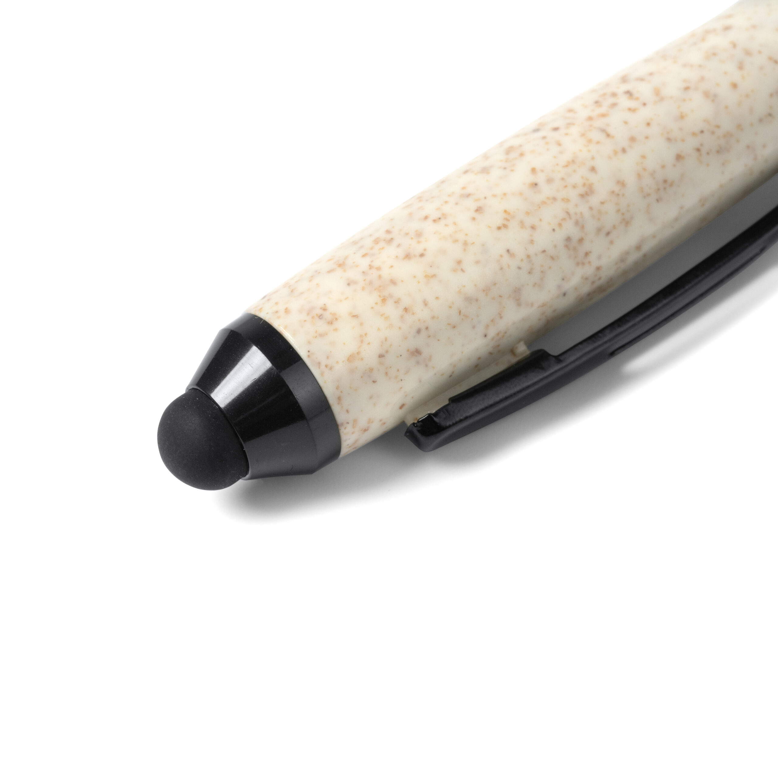 Bolígrafo giratorio de fibra de trigo y PP con acabados en negro. Tinta azul.