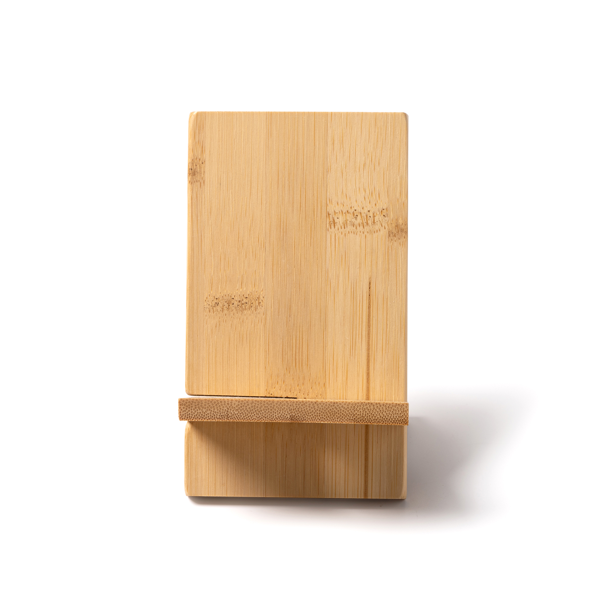 Soporte de bambú para móviles. Perfecto para cargar tu Smartphone de forma cómoda. Ranura inferior para cable de carga. Incluye 2 partes de fácil montaje