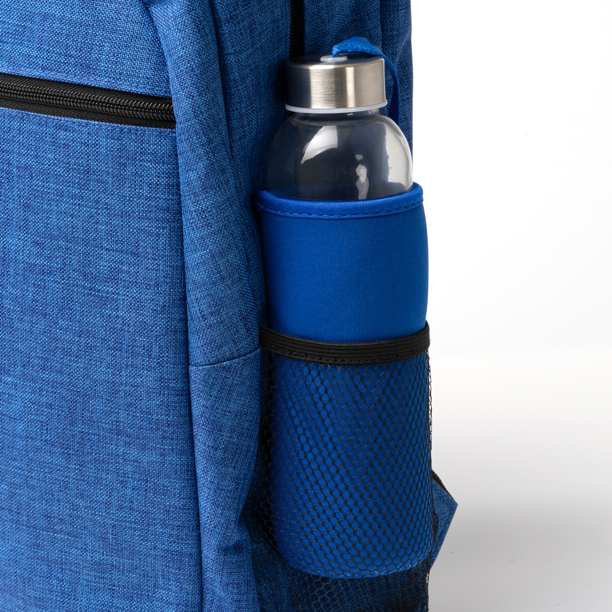 Mochila realizada en 600D RPET con acabado jaspeado. Asas y espalda acolchadas. Gran compartimento interior y bolsillo para portátil de de 15¨. Bolsillo exterior frontal y bolsillos laterales.