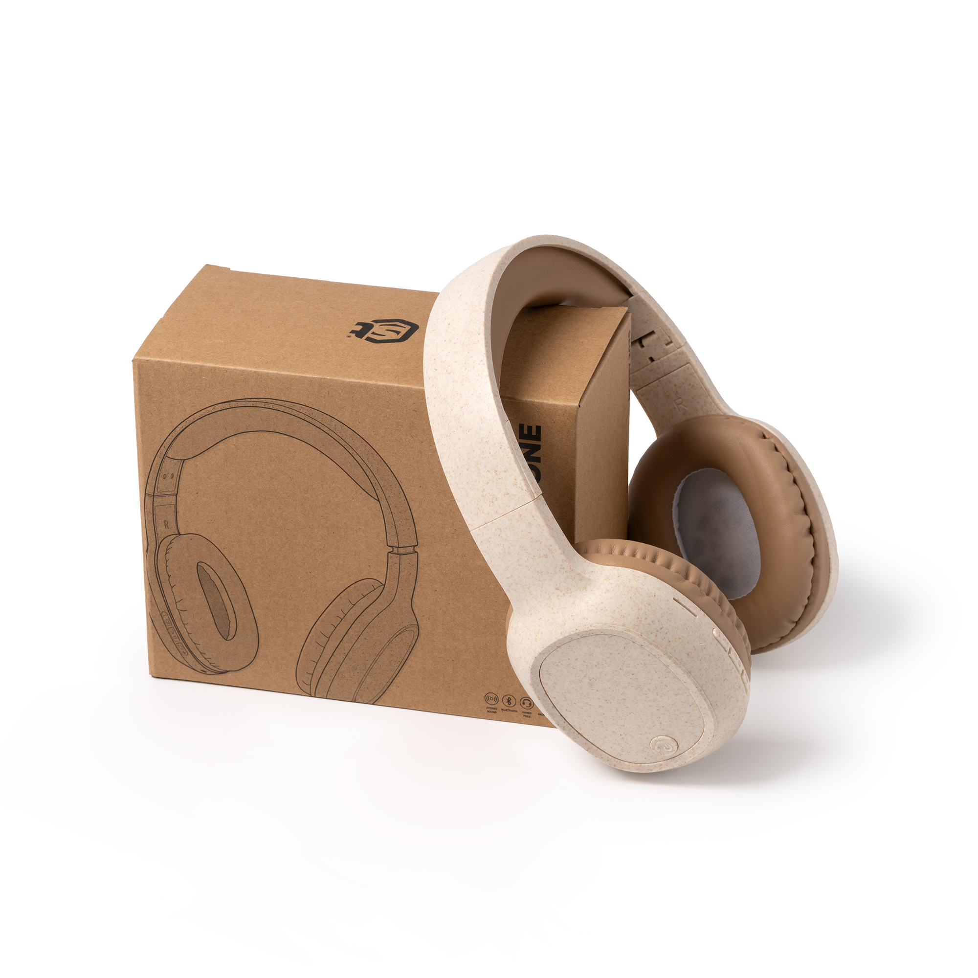 Añadir al rastreador de preciosAuriculares inalámbricos realizados en fibra de trigo con acolchado superior y almohadillas en polipiel. Cuenta con función manos libres, con panel de control y botones multifunción para colgar y responder llamadas y micrófono incorporado.