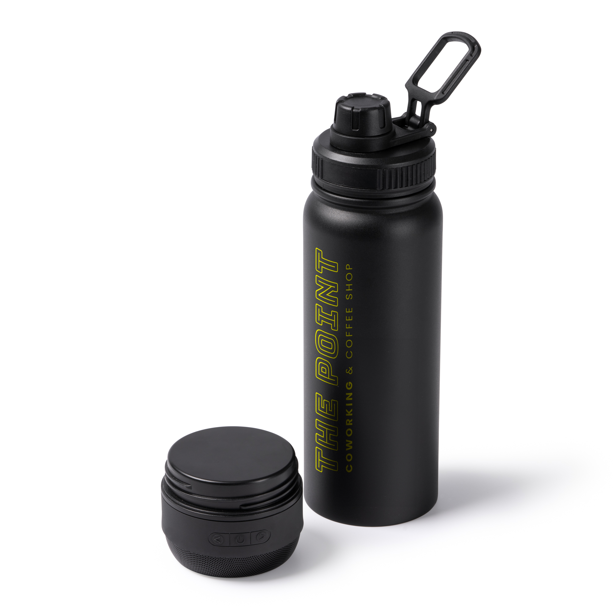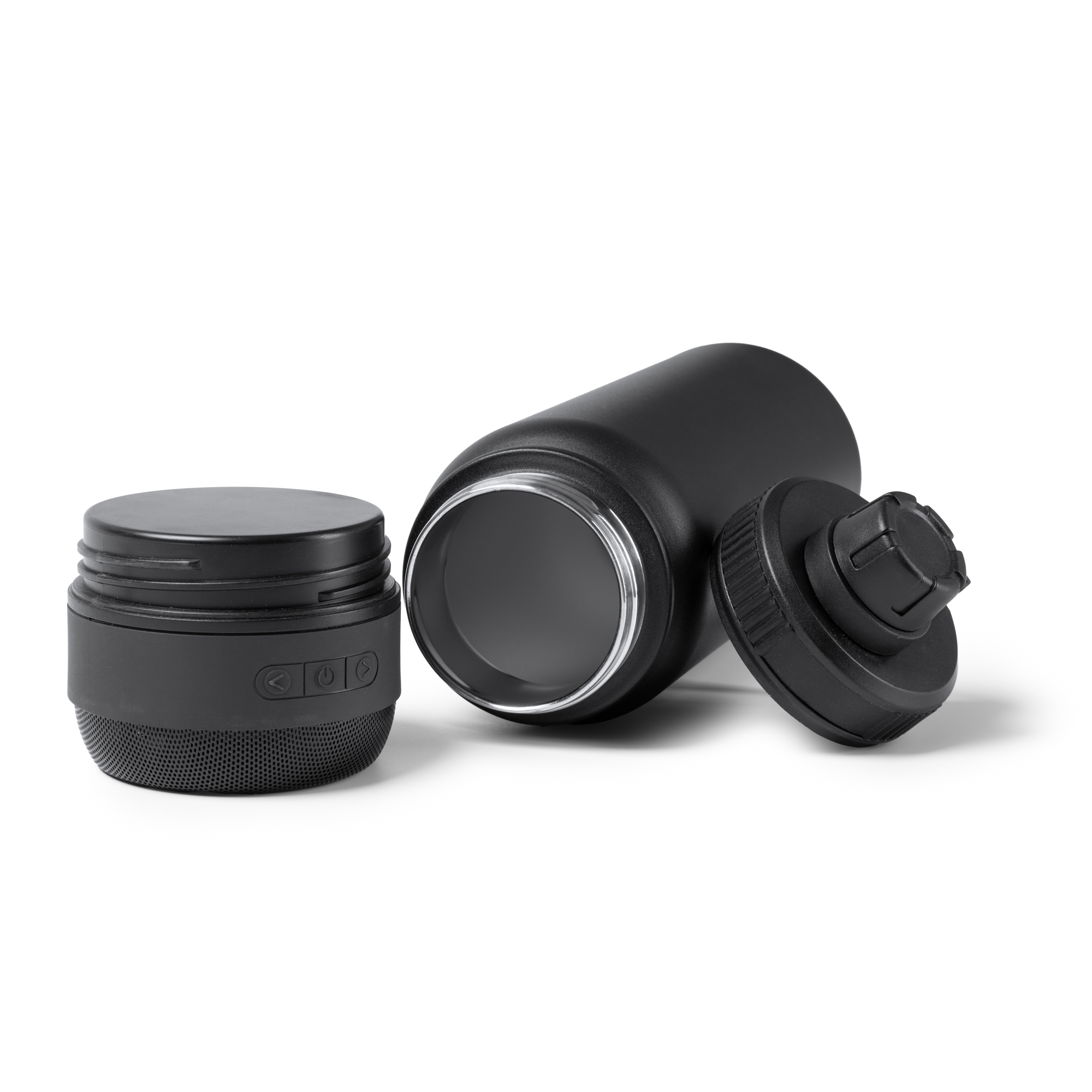 Añadir al rastreador de preciosBidón térmico de acero inoxidable 304 de doble pared con altavoz Bluetooth extraíble en la base. Capacidad del bidón de 650 ml. Tapa con asa de transporte retraíble. Altavoz con 3W de potencia, con batería de litio recargable. Cuenta con botones multifunción de control de reproducción.