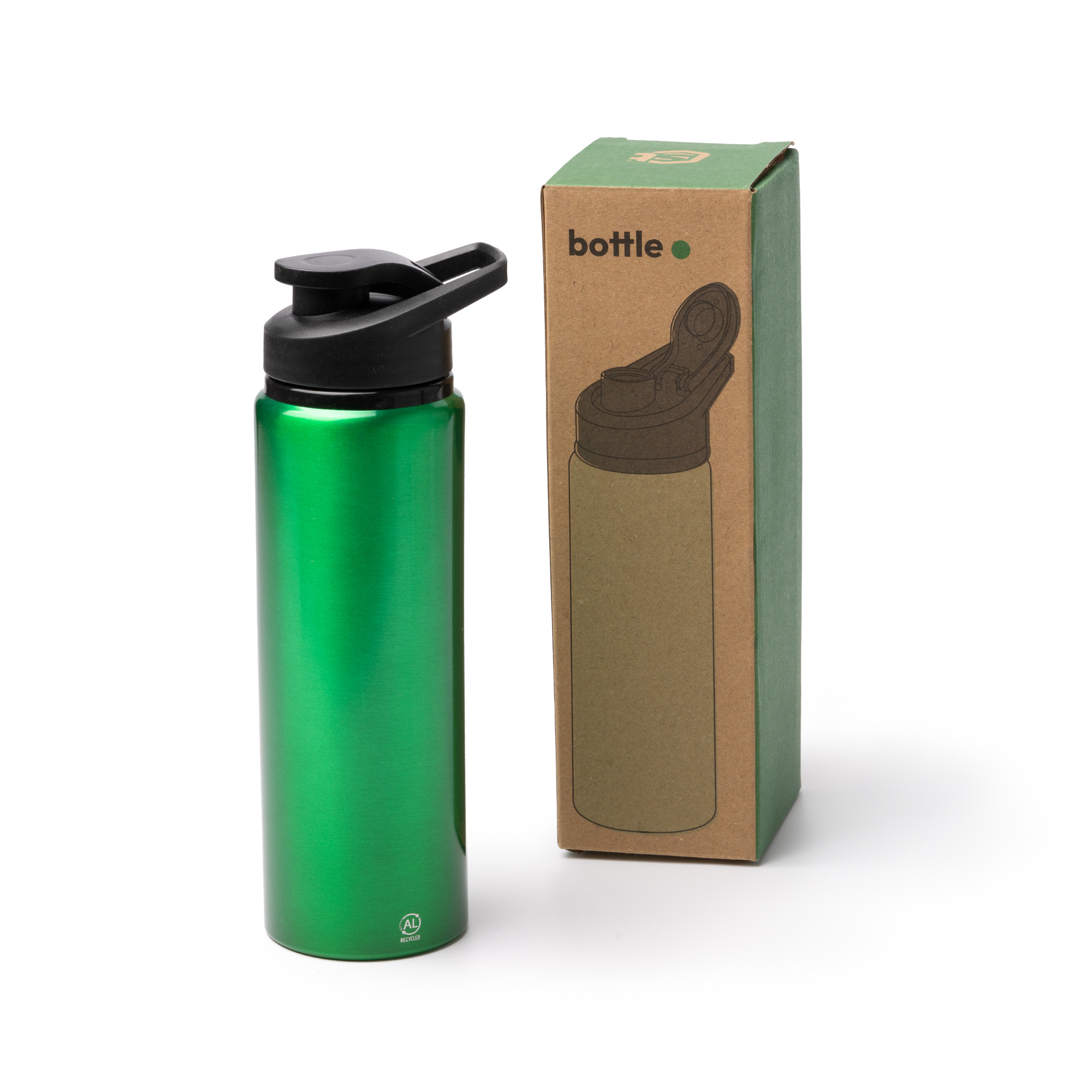 Bidón de aluminio reciclado con acabado metalizado. Equipado con un tapón con boquilla de rosca de seguridad y una práctica asa de transporte. Ideal para mantenerte hidratado de manera sostenible y segura, combinando durabilidad y diseño elegante en un solo producto. Perfecto para llevar a todas partes, desde la oficina hasta actividades al aire libre. Capacidad de 800 ml.