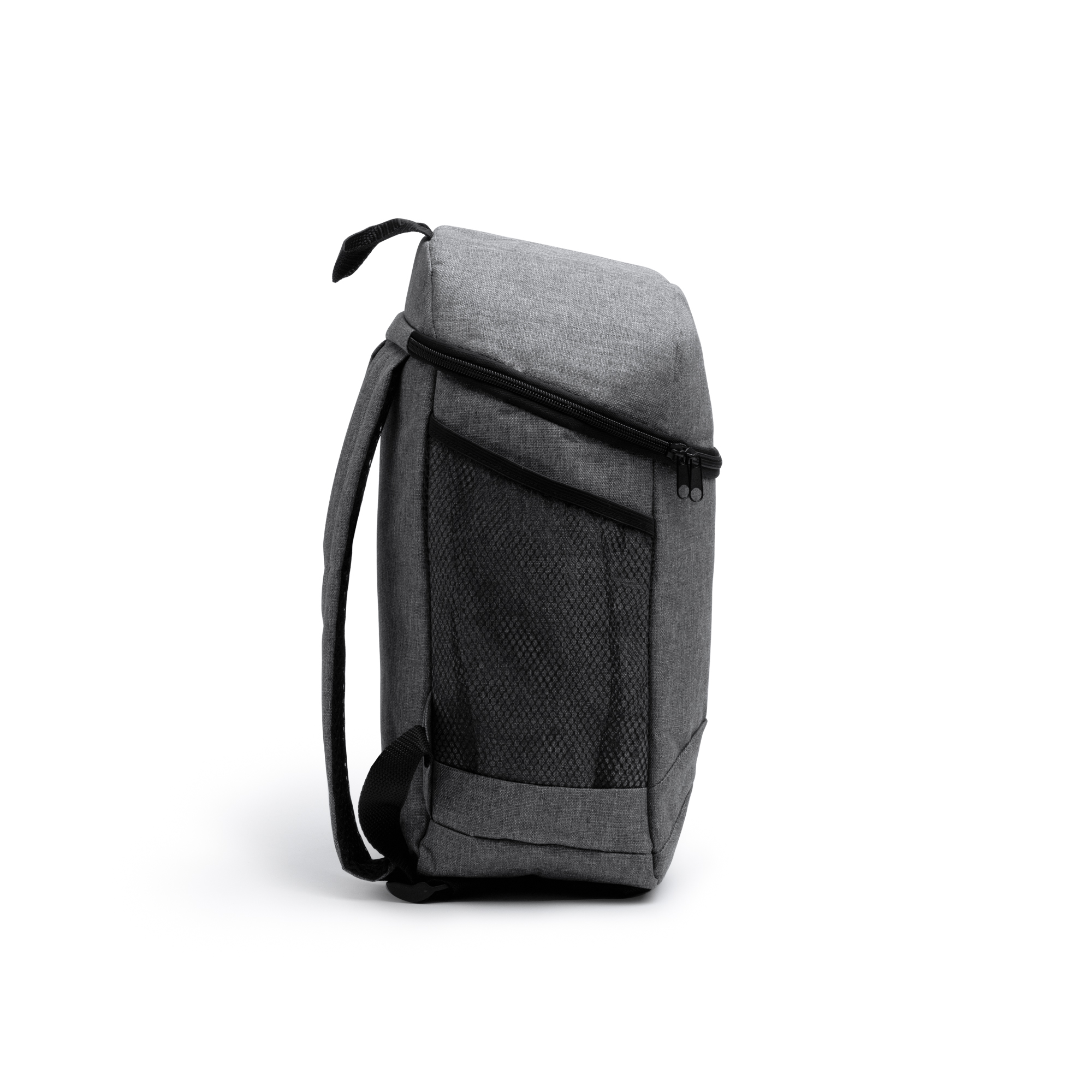 Nevera mochila de poliester reciclado RPET con diseño vigoré. Su composición la hace una opción sostenible y práctica para el transporte de alimentos y bebidas. Tiene, además, un gran compartimento principal con interior isotérmico. Con dos bolsillos de rejilla en sus laterales, la hace una opción perfecta para el desplazamiento de diferentes objetos para la alimentación.