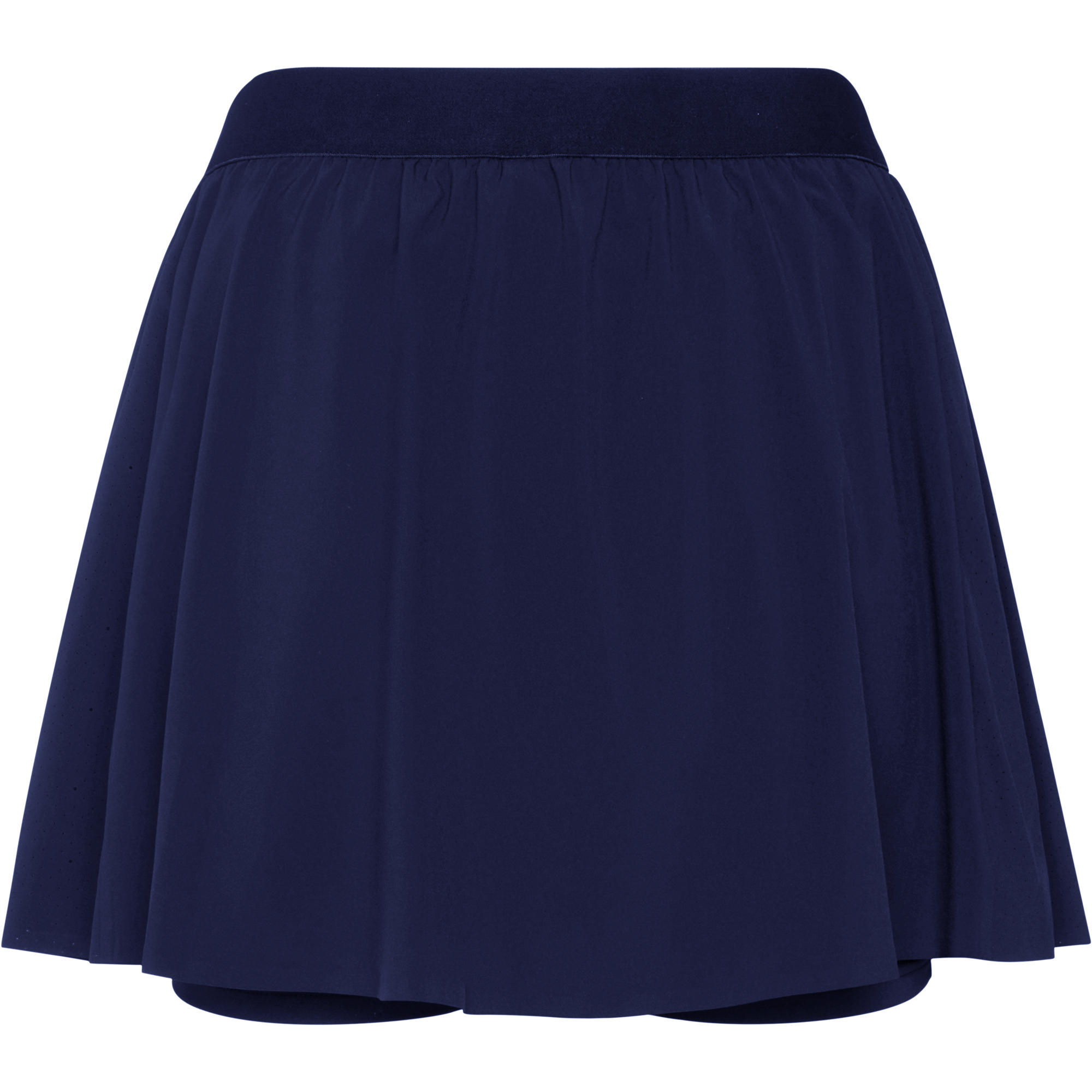 Falda pádel con short mujer. Tejido stretch ligero y microperforado combinado. Cintura con banda elástica en la parte trasera y cordón en la parte delantera. Bajo termosellado. Certificado GRS.