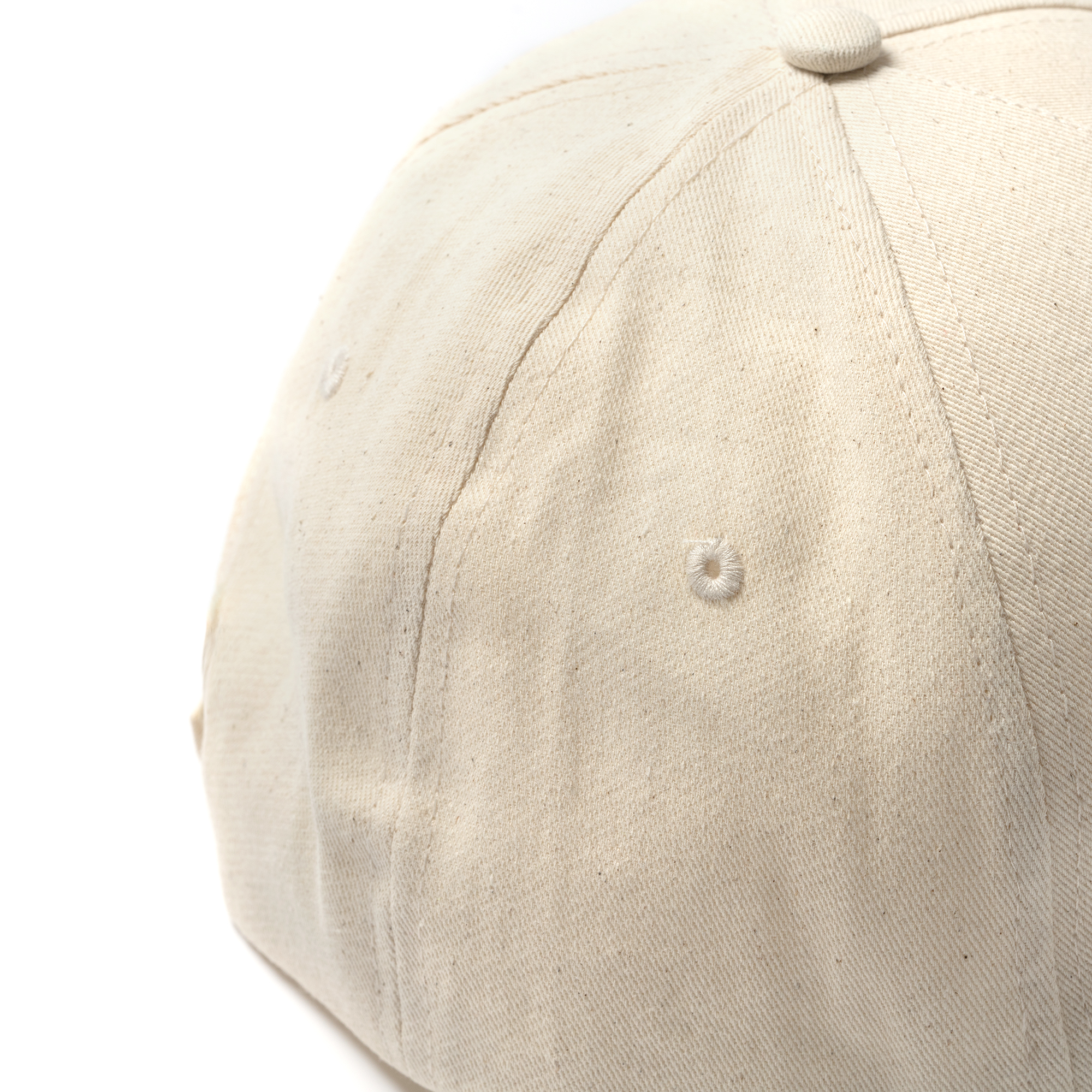 Gorra de 5 paneles 100% algodón orgánico. Cierre de velcro ajustable y orificios de ventilación.