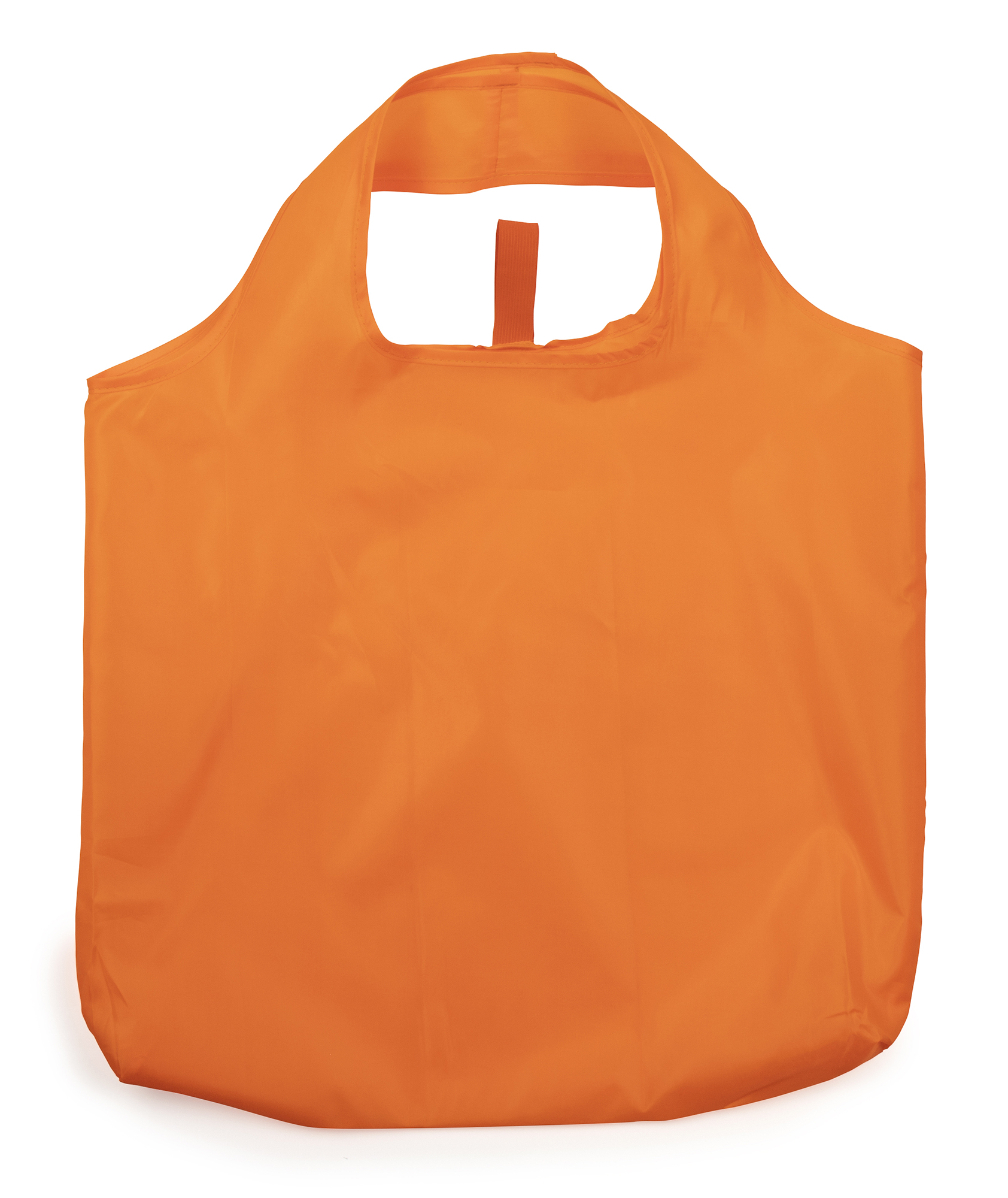 Bolsa de la compra plegable en suave poliéster 190T en acabado cosido. Incluye práctico elástico para plegado.