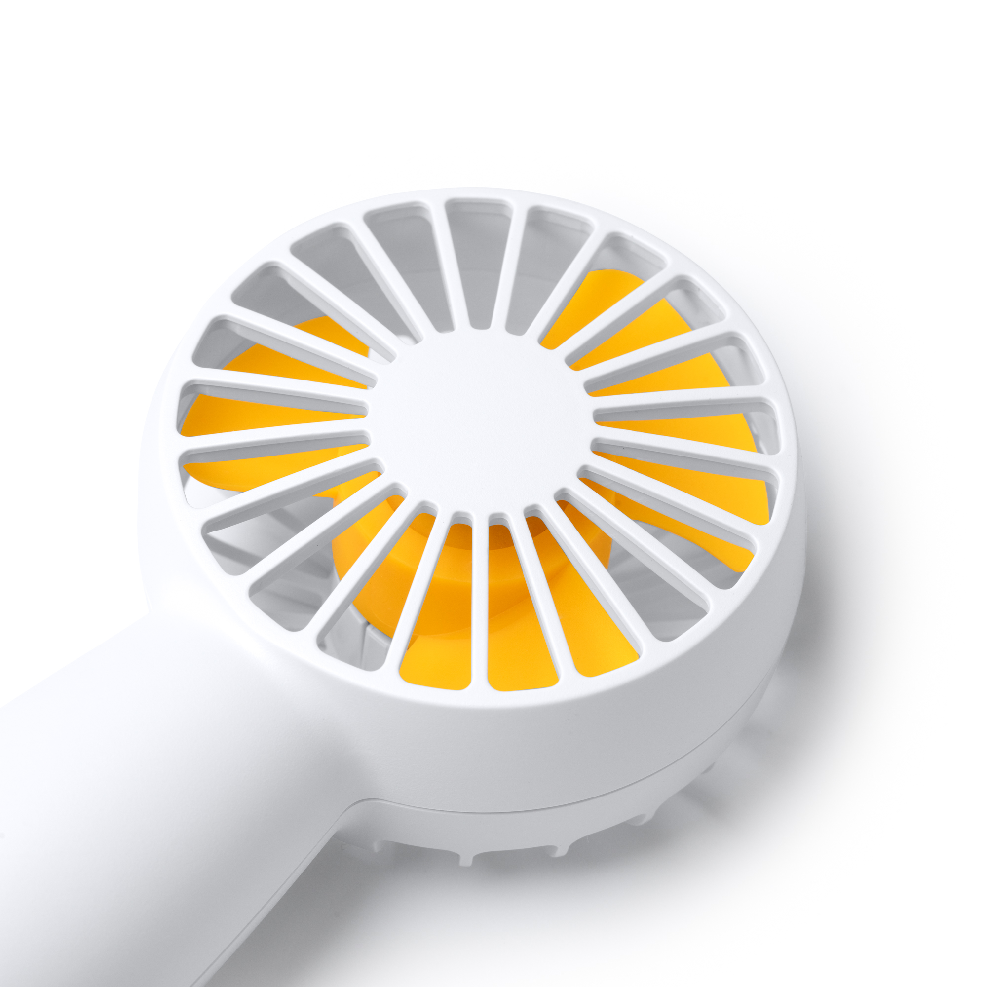 Ventilador de mano con batería 1500 mAh. Con 3 velocidades modificables mediante botón multifunción. Con salida Tipo C e indicador led de carga.